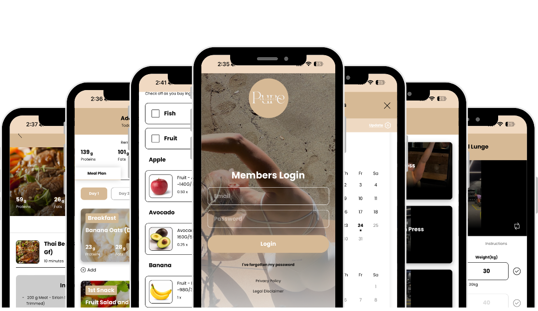 Pure Balance members receive their programs on a Mobile App, so you can take your personalised meal plans and training programs with you to both the supermarket and the gym!